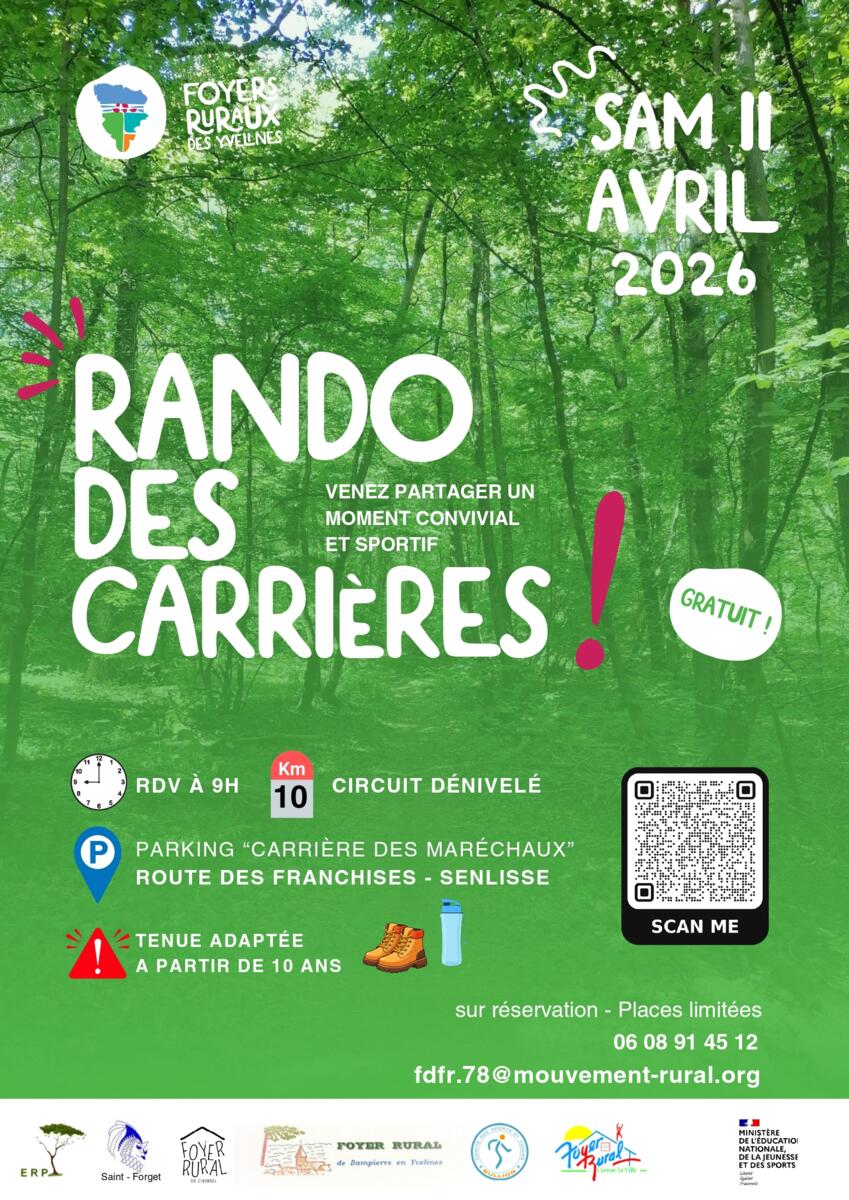 La Fédération des Foyers Ruraux des Yvelines vous donne rendez-vous pour une marche de 10 km organisée avec les Foyers Ruraux de Choisel, Dampierre-en-Yvelines, Saint‑Forget, Cernay‑la‑Ville, ainsi qu’avec le Comité des Sports et Loisirs de Bullion et Les Essarts Rando Pays d’Yvelines.