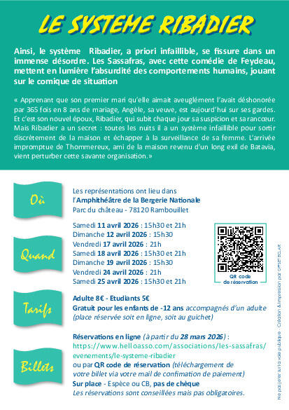 La Troupe de théâtre des Sassafras est heureuse de vous présenter leur nouveau spectacle LE SYSTEME RIBADIER de Georges Feydeau