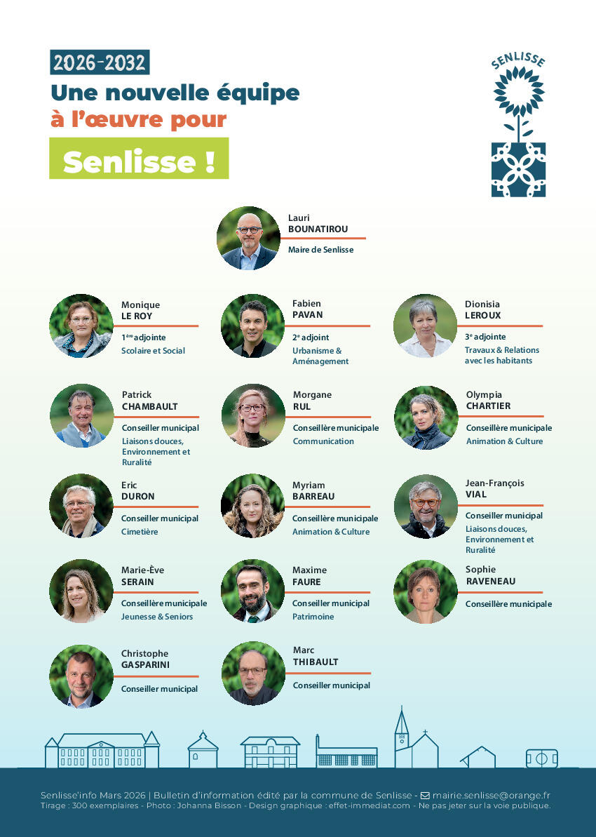 Vous trouverez en pièce jointe le document présentant la nouvelle équipe municipale élue lors du conseil municipal du 15 mars 2026.