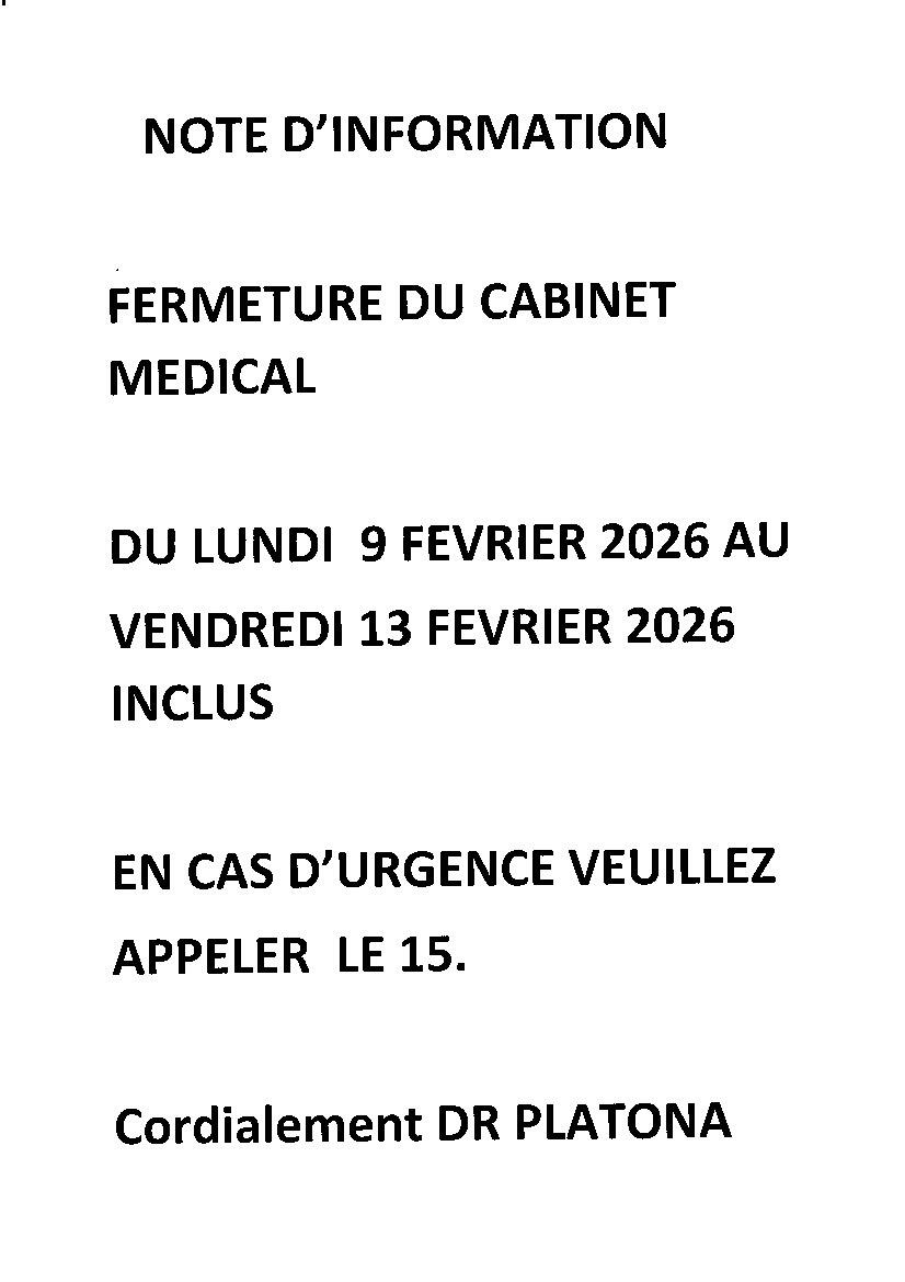 Le cabinet médical sera fermé du 9 au 13 février 2026 inclus.