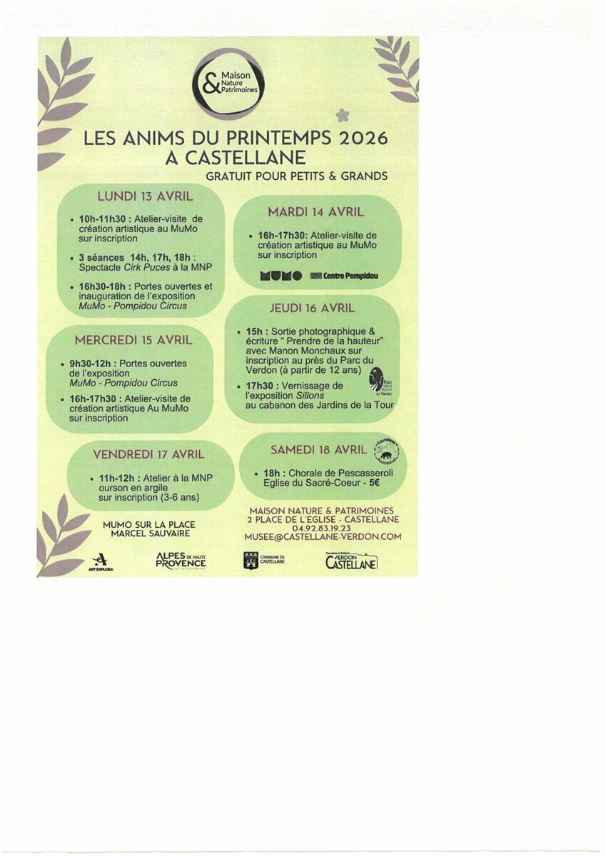 Your town hall / News / ANIMS PRINTEMPS 2026 CASTELLANE