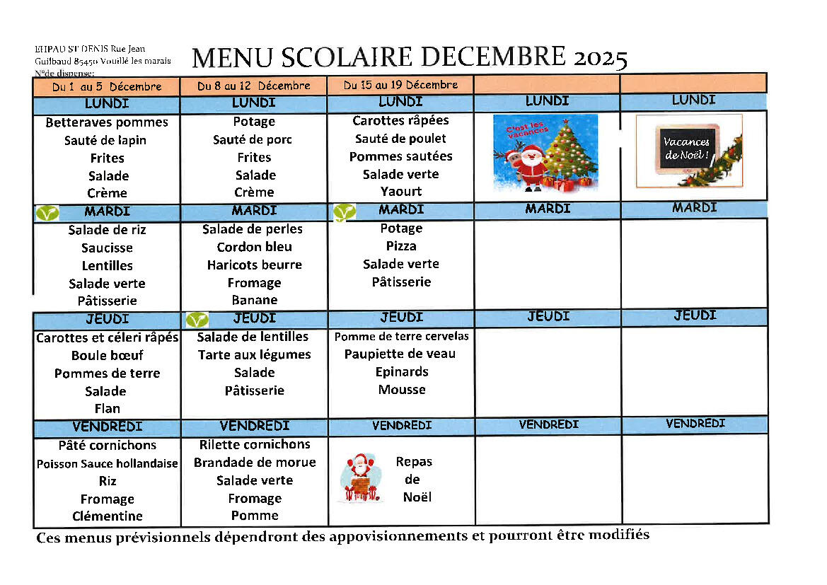 Marché de Noël & Repas de Noël – Vouillé-les-Marais