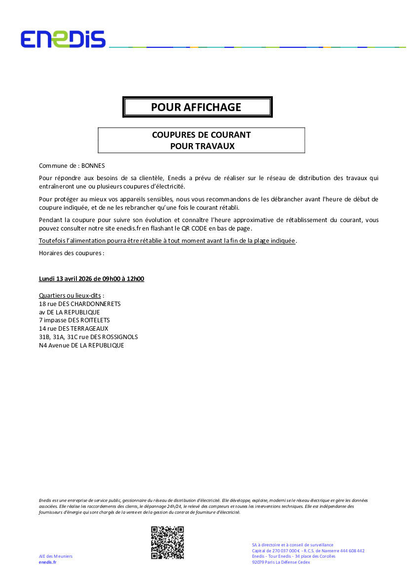 Coupure électrique : nouvelle date et lieux