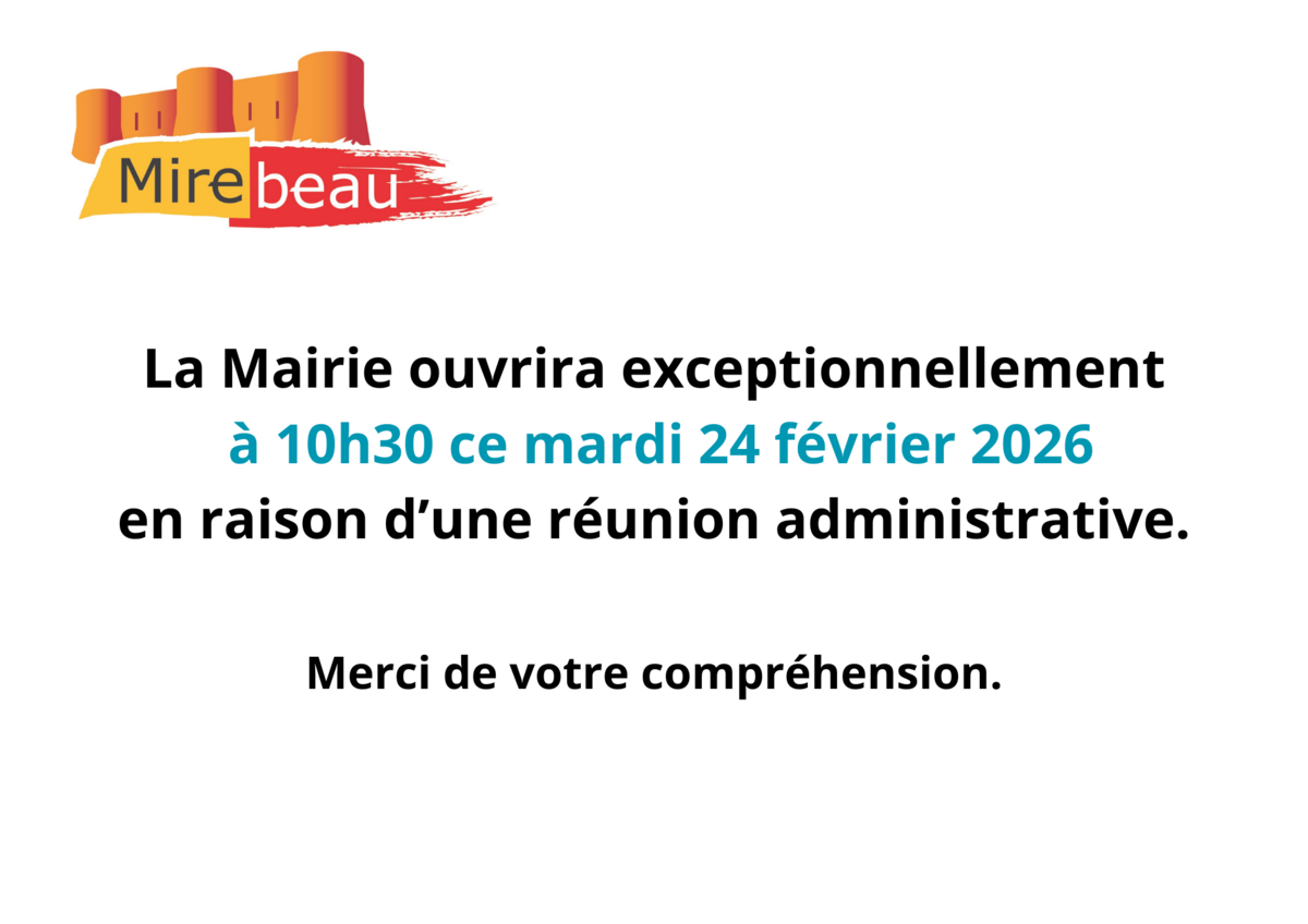 Ouverture exceptionnelle de la Mairie à 10h30 - 24/02/26