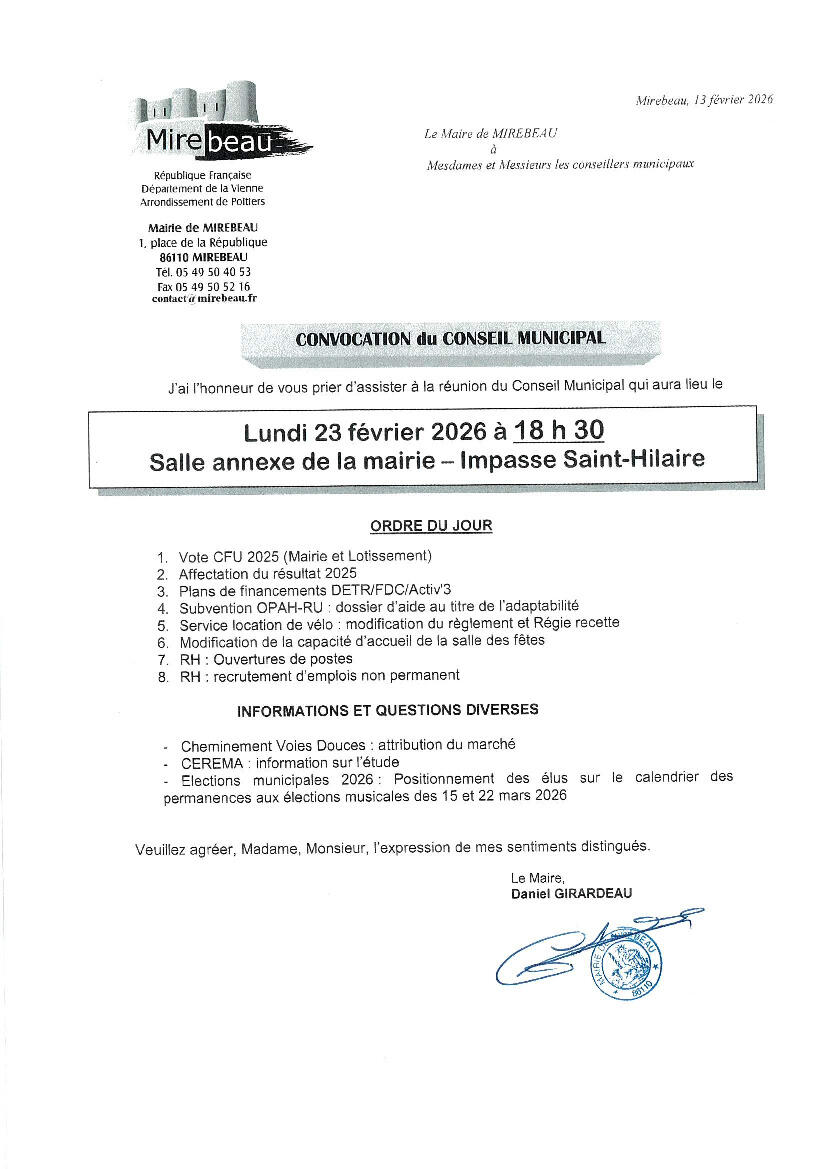 Your town hall / News / Réunion du Conseil Municipal - Convocation