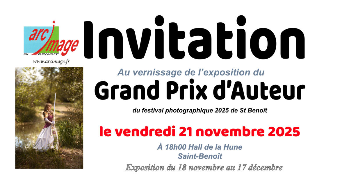 Afin de marquer la fin de cette édition 2025 du festival, l’équipe d’Arc’Image invite ses partenaires et sponsors, les participants aux expositions (photographes, clubs photos, établissements d’enseignement, concurrents des concours) ainsi que les bénévoles à partager un moment convivial qui aura lieu le vendredi 21 novembre 2025 dans le hall de La Hune à partir de 18 heures.