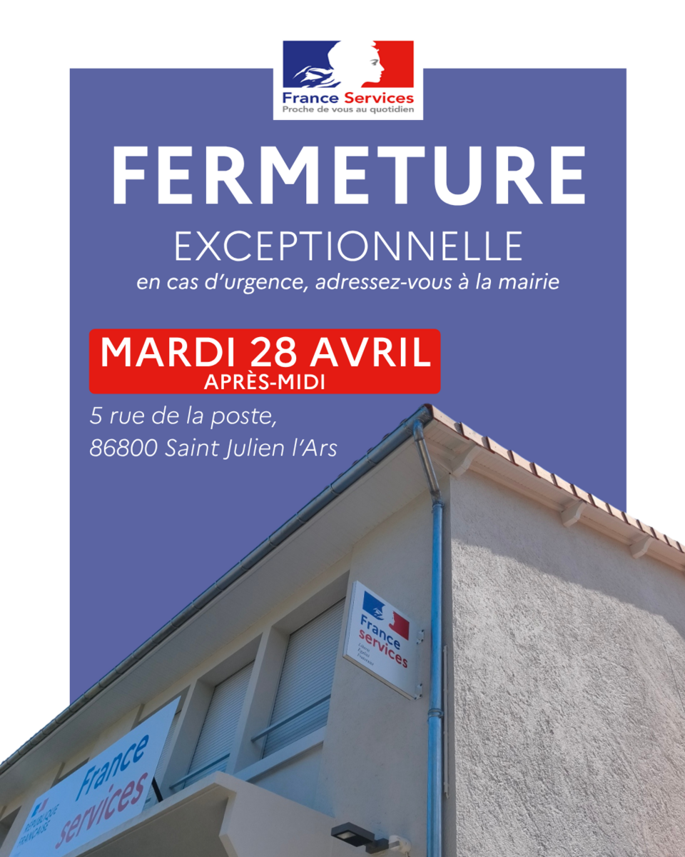 Fermeture France Services mardi 28 avril de 12h15 à 15h45