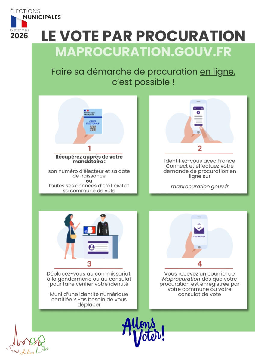 Les élections municipales et communautaires auront lieu les 15 et 22 mars 2026. Si vous savez d’ores et déjà que vous ne pourrez pas vous rendre dans votre bureau de vote, pensez à donner procuration à une personne de confiance pour voter à votre place.