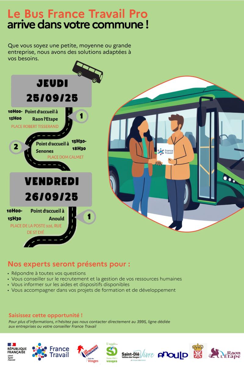 Your town hall / News / Vend. 26 sept. de 10h à 15h30 : Bus France Travail pro