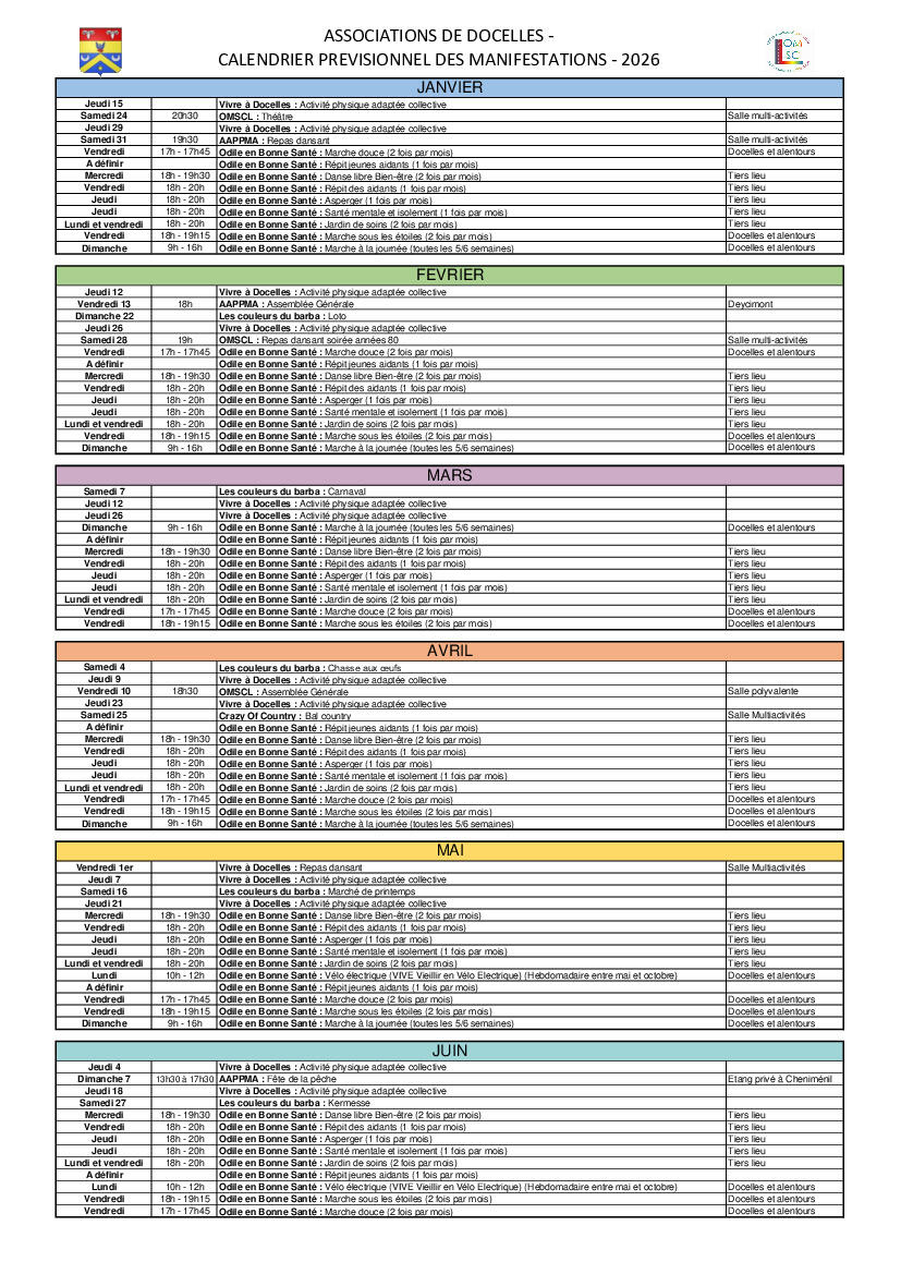 OSMCL - Calendrier Manifestations Associations 2026