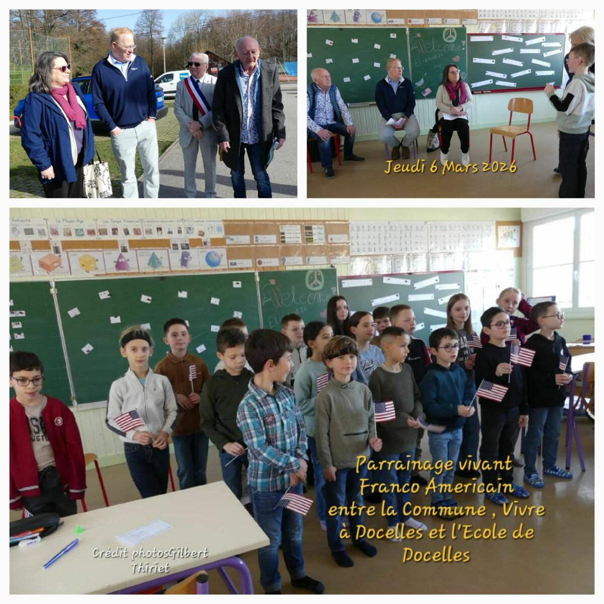 A l’initiative de l’Association Vivre à Docelles (VAD), Todd et Elizabeth MAJER, couple américain de Boston ont été accueillis à l’école de Docelles par les élèves de Madame BOULIER. Réception chaleureuse, avec nombre de questions posées en anglais par les