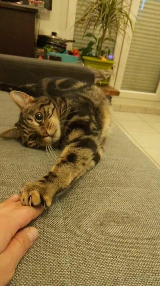 Mâle tigré, de taille assez fine. Répond au nom de Yoshi