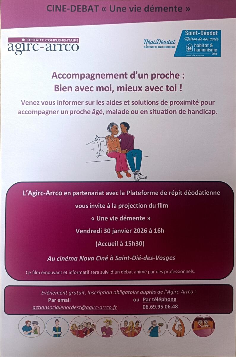 Nous souhaitions vous informer de l’organisation d’un ciné-débat porté par l’Agirc-Arrco, en partenariat avec la Plateforme de répit RépiDéodat, autour de la thématique de l’accompagnement des aidants.