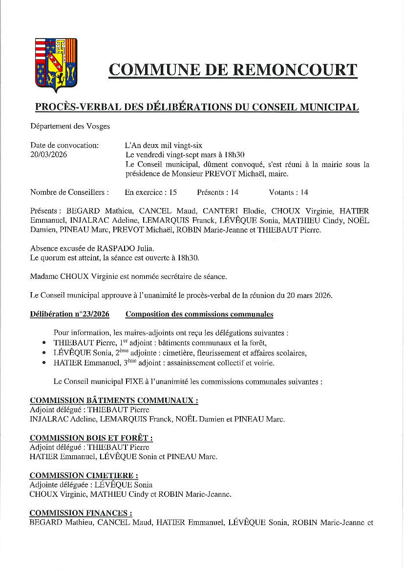 Vous trouverez en pièces jointes le compte rendu et le procès-verbal de la réunion du Conseil municipal en date du 27 mars 2026.