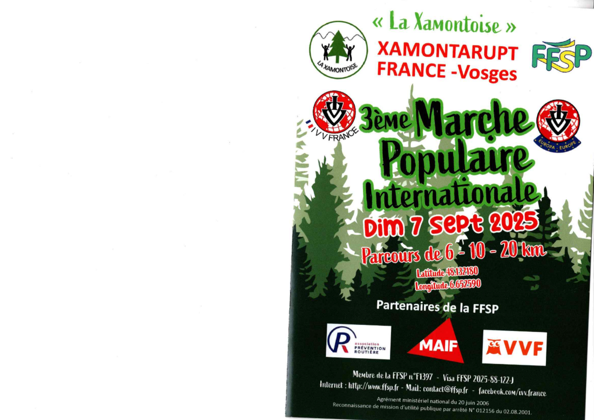 La Xamontoise organise dimanche 7 septembre 2025 sa 3° marche populaire, parcours 6, 10 et 20 km.