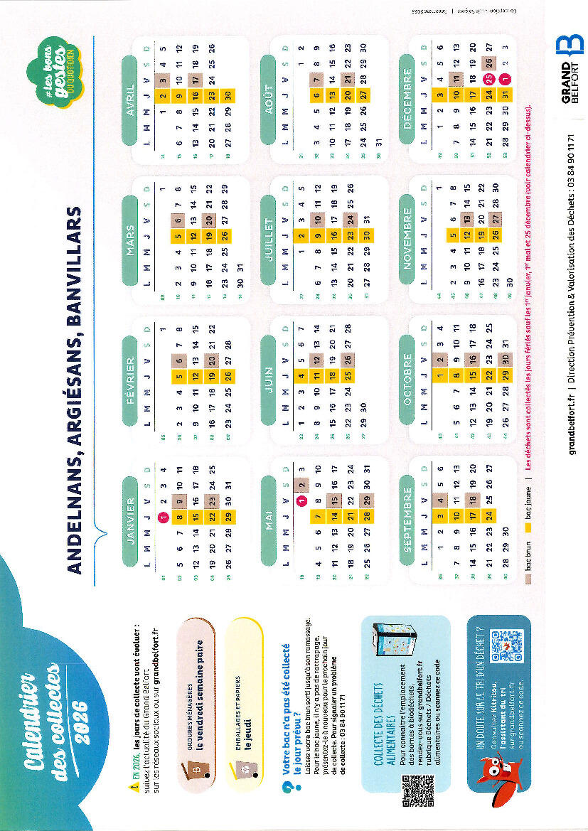 calendrier des collectes des déchets 2026