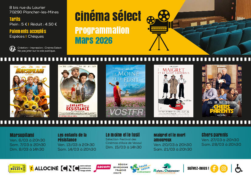 Your town hall / News / Programmation Mars 2026 du cinéma Select