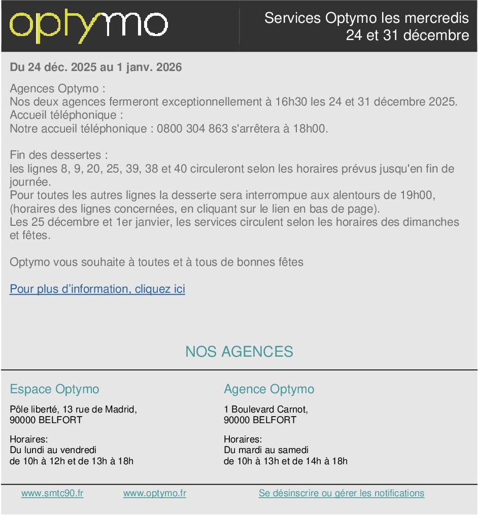 / OPTYMO : services 24 et 31 décembre 2025
