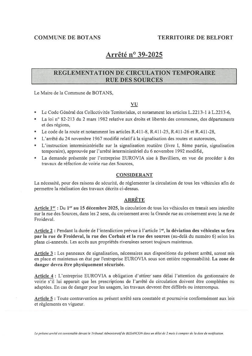 ARRÊTÉ DE CIRCULATION TEMPORAIRE / RUE DES SOURCES