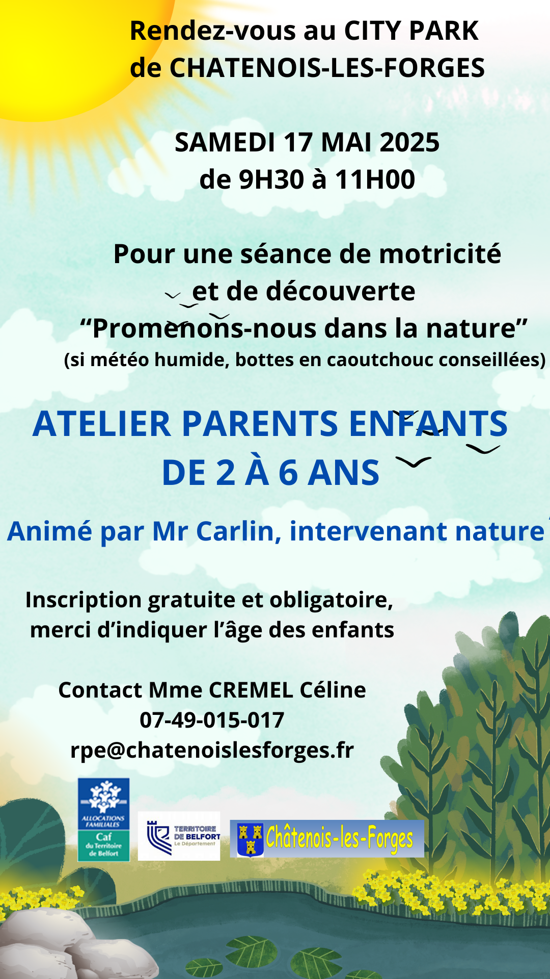 Prochain atelier parents-enfants 2-6 ans (attention marche acquise !)
