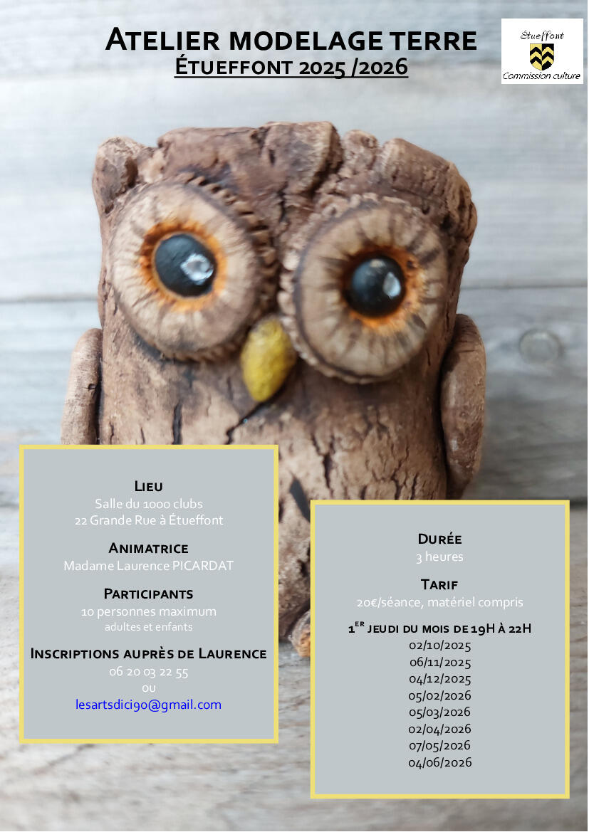 RAPPEL Atelier modelage terre - Jeudi 7 mai