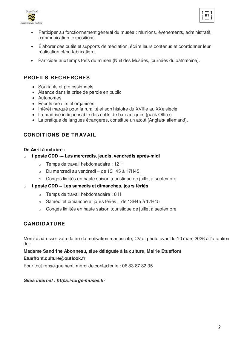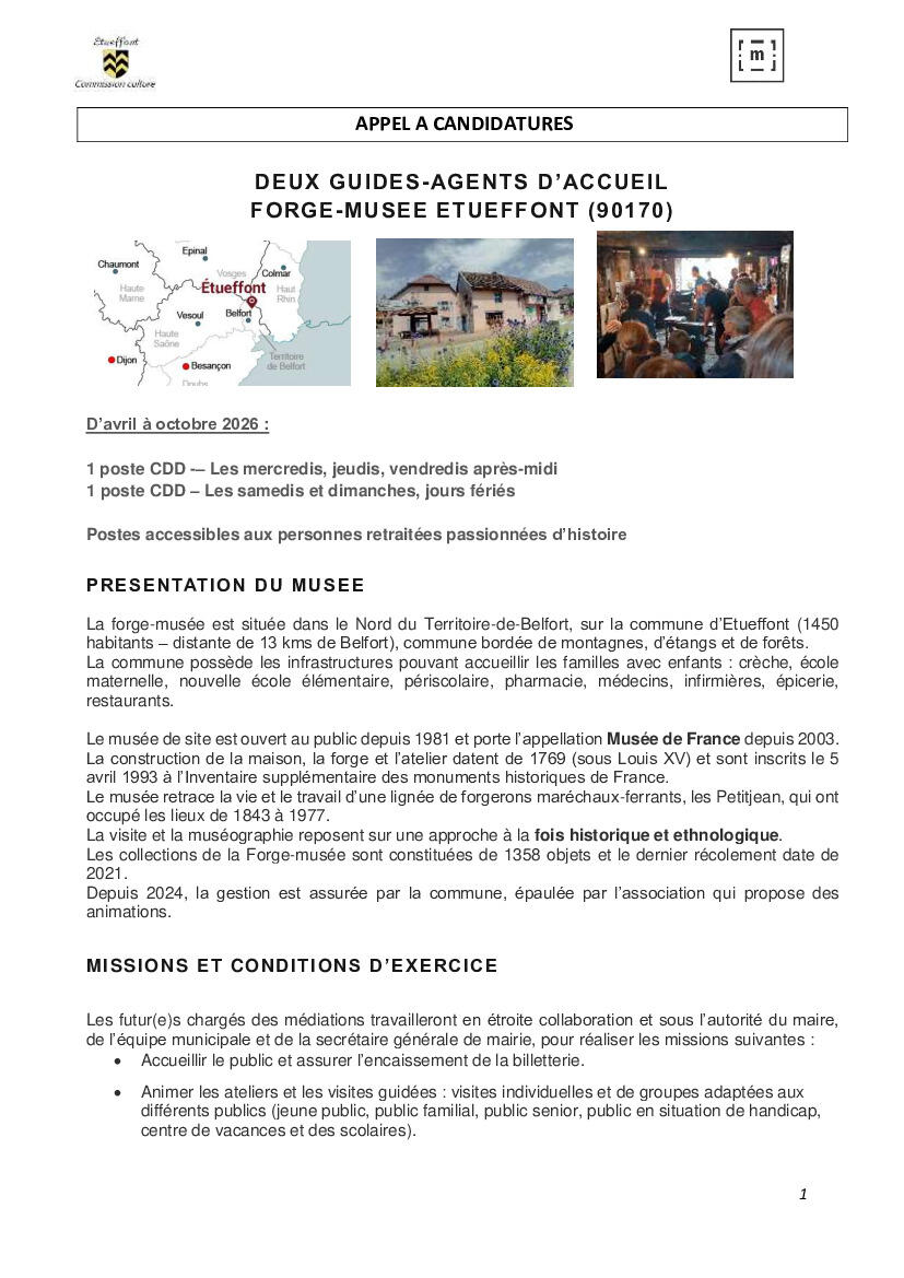 Your town hall / News / RAPPEL FORGE-MUSÉE Offres d'emplois guides-agents d'accueil