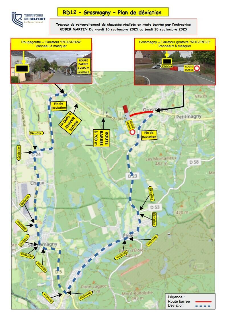 Ces travaux seront réalisés par l’entreprise ROGER MARTIN Belfort, sur la RD12, en et hors agglomération de Grosmagny :