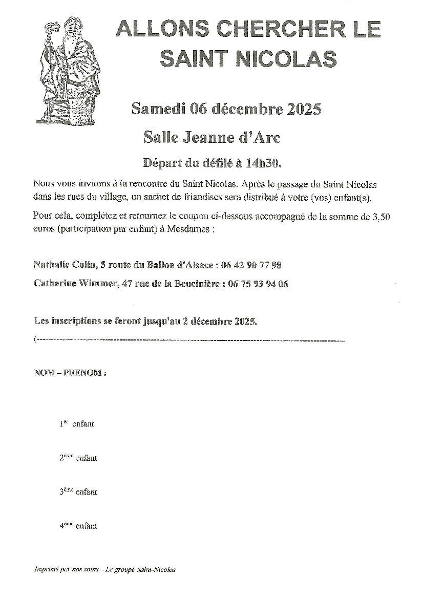 Réservation avant le 2 décembre auprès de Nathalie Colin 06.42.90.77.98 ou de Catherine WIMMER 06.75.93.94.06