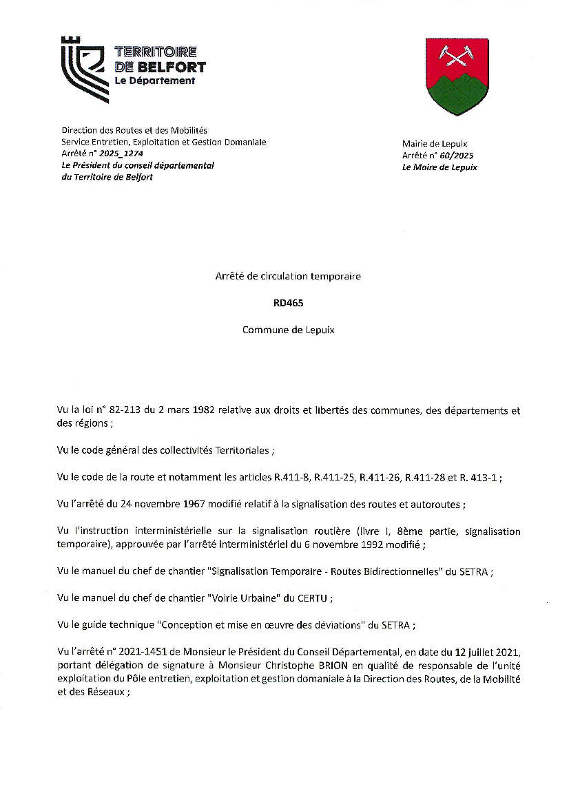 Cet événement entrainera la fermeture de la RD465, le dimanche 10 août 2024 à partir de 6h00 jusqu'à réouverture de la route programmée vers 20h00, des réglementations du stationnement (RD465 et voies communales) et des réglementations de circulation (sens unique sur des voies communales), en et hors agglomération de Lepuix.