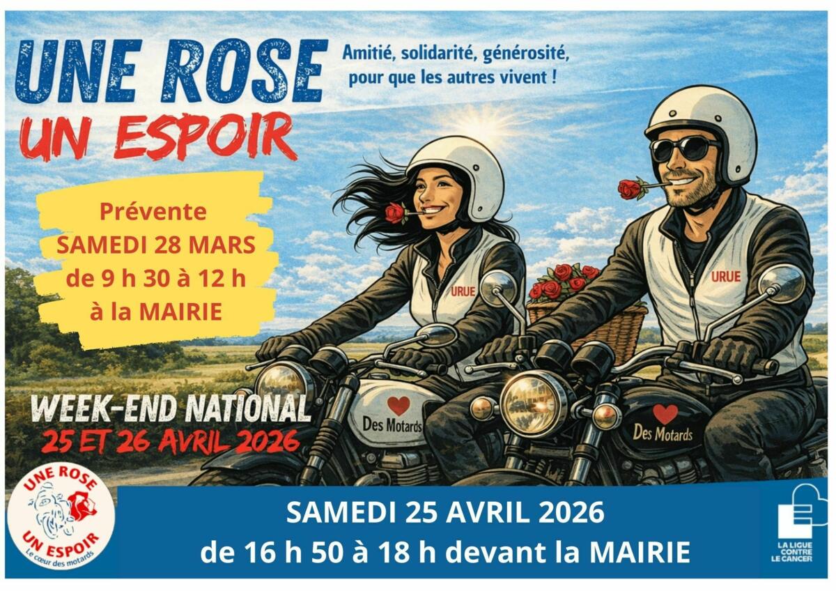 OPERATION 1 ROSE 1 ESPOIR = Prévente de roses samedi 28 mars
