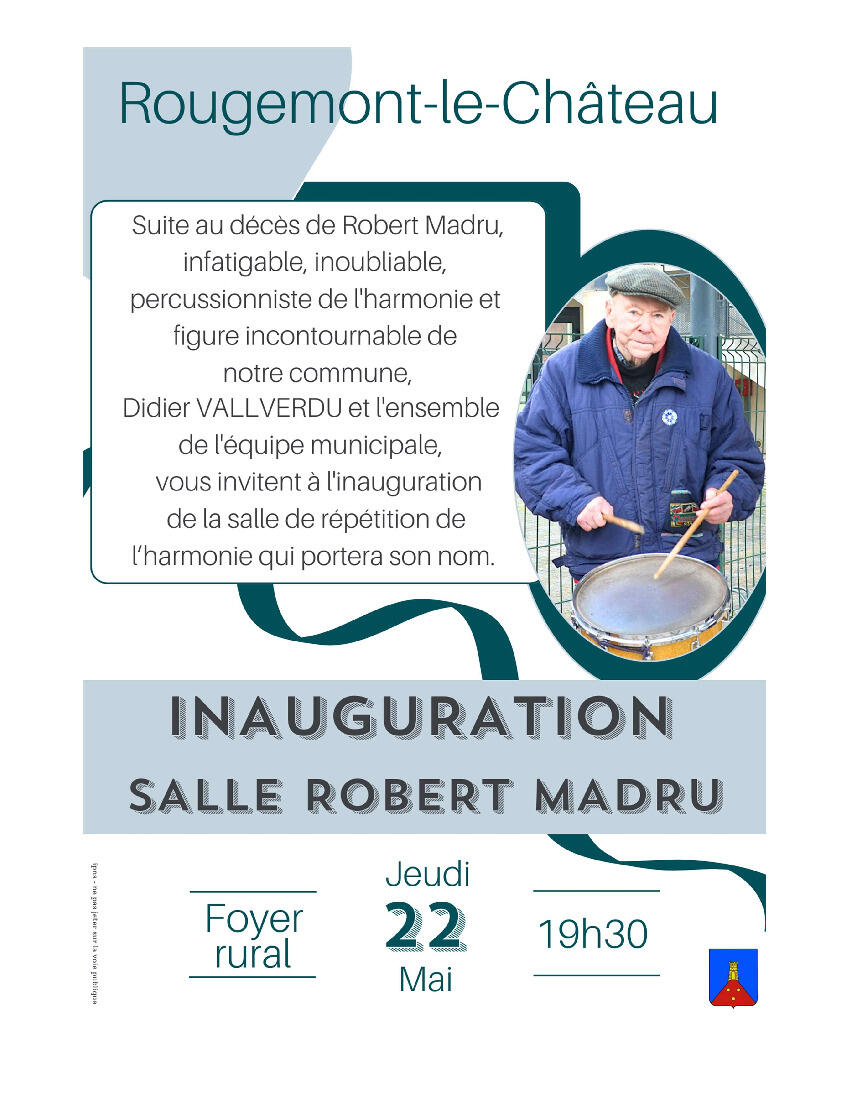 Inauguration de la salle de répétition de l'harmonie "salle Robert MADRU" jeudi 22 mai à 19h30 au Foyer Rural