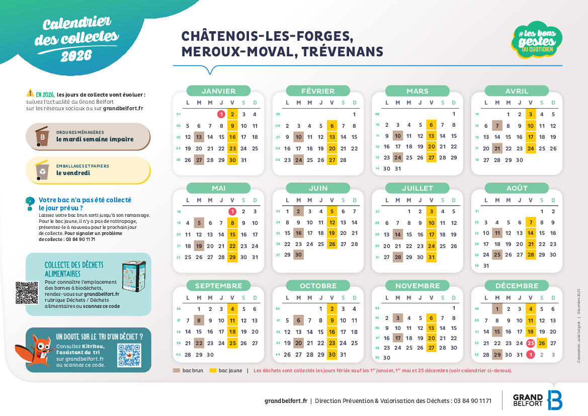 Calendrier de collecte des ordures ménagères 2026