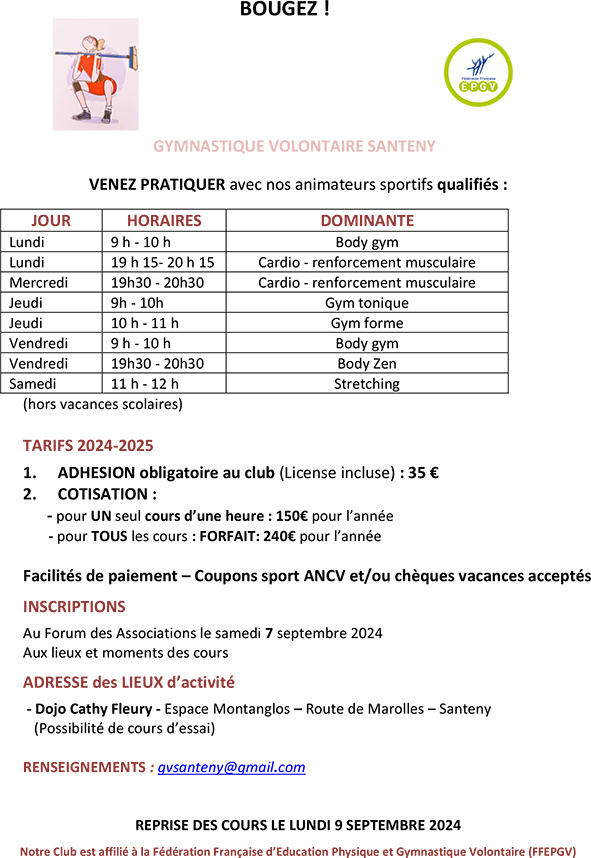 Your town hall / News / 🤸‍♀️ La Gym Volontaire à Santeny à demi-tarif dès le 3 mars