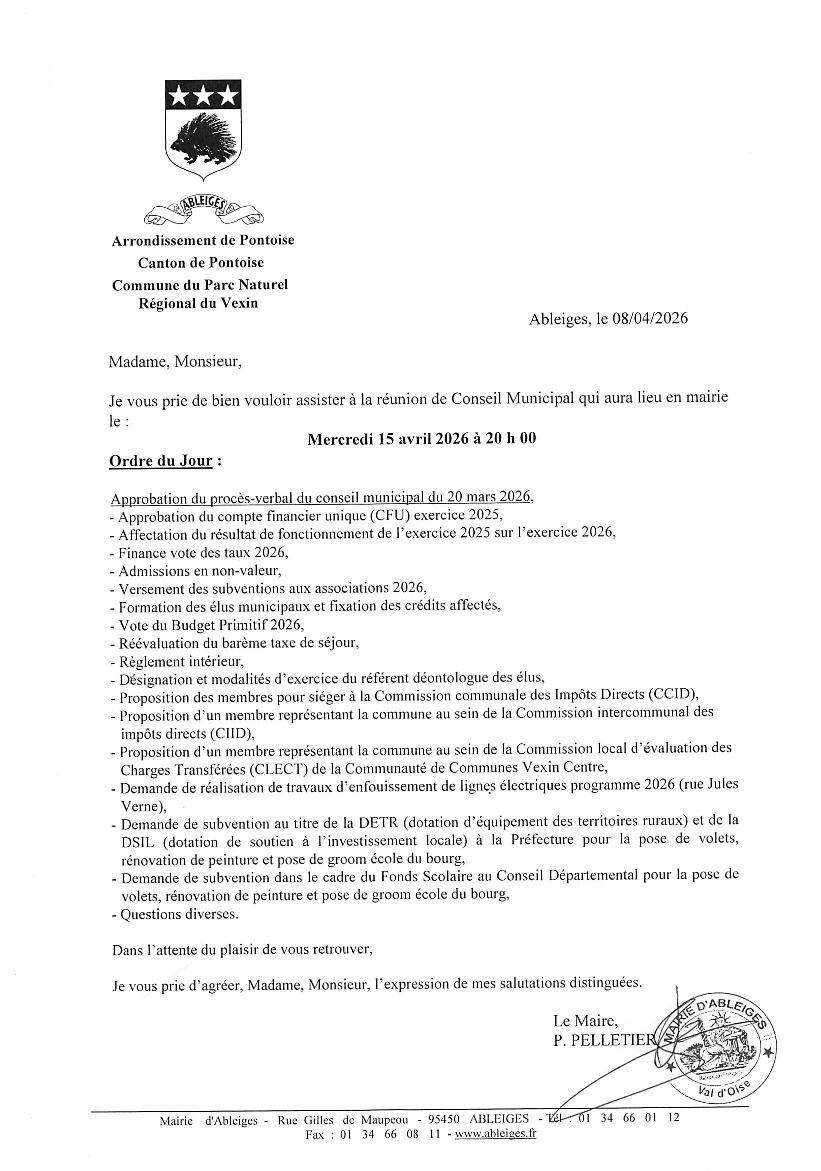 Conseil Municipal Ableiges 15 avril 20h00