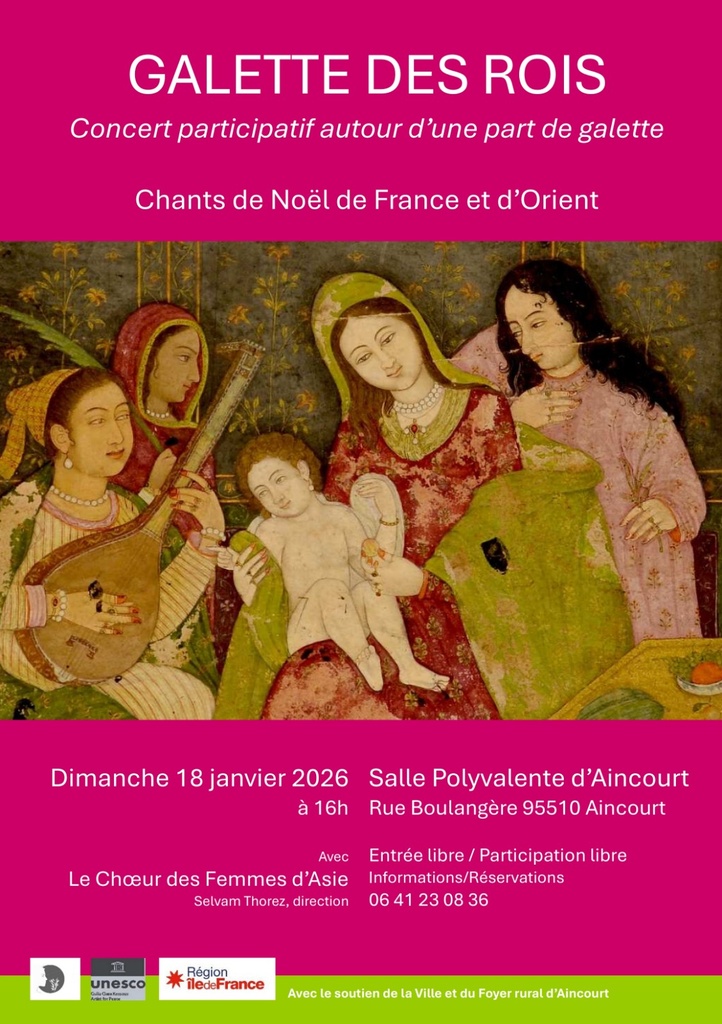 Le dimanche 18 janvier 2026 à 16h, la salle polyvalente d’Aincourt vibrera au son des chants de Noël de France et d’Orient à l’occasion d’un concert participatif autour de la galette des rois . L’entrée est libre, avec participation libre, pour permettre à chacun de venir partager ce beau moment de convivialité.