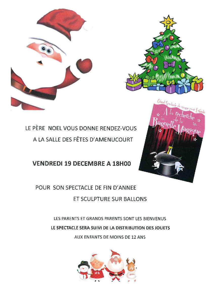 C'est le vendredi 19 décembre qu'après le spectacle le Père Noël distribuera les jouets aux enfants de moins de 12 ans.