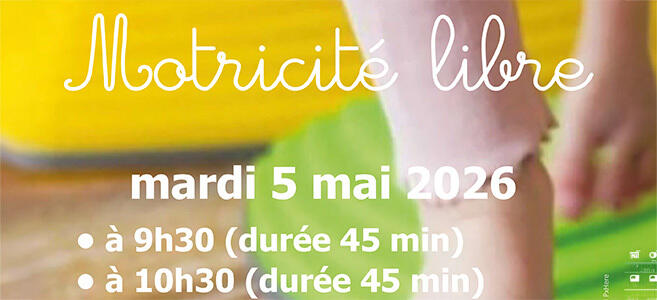 La communauté de communes Vexin Centre organise un atelier de motricité, animation gratuite pour les enfants de 6 mois à 4 ans, accompagnés d’un adulte, mardi 5 mai 2026 à 9h30 et à 10h30 à l’espace André François, 20 rue des Maurois à Grisy-les-Plâtres.