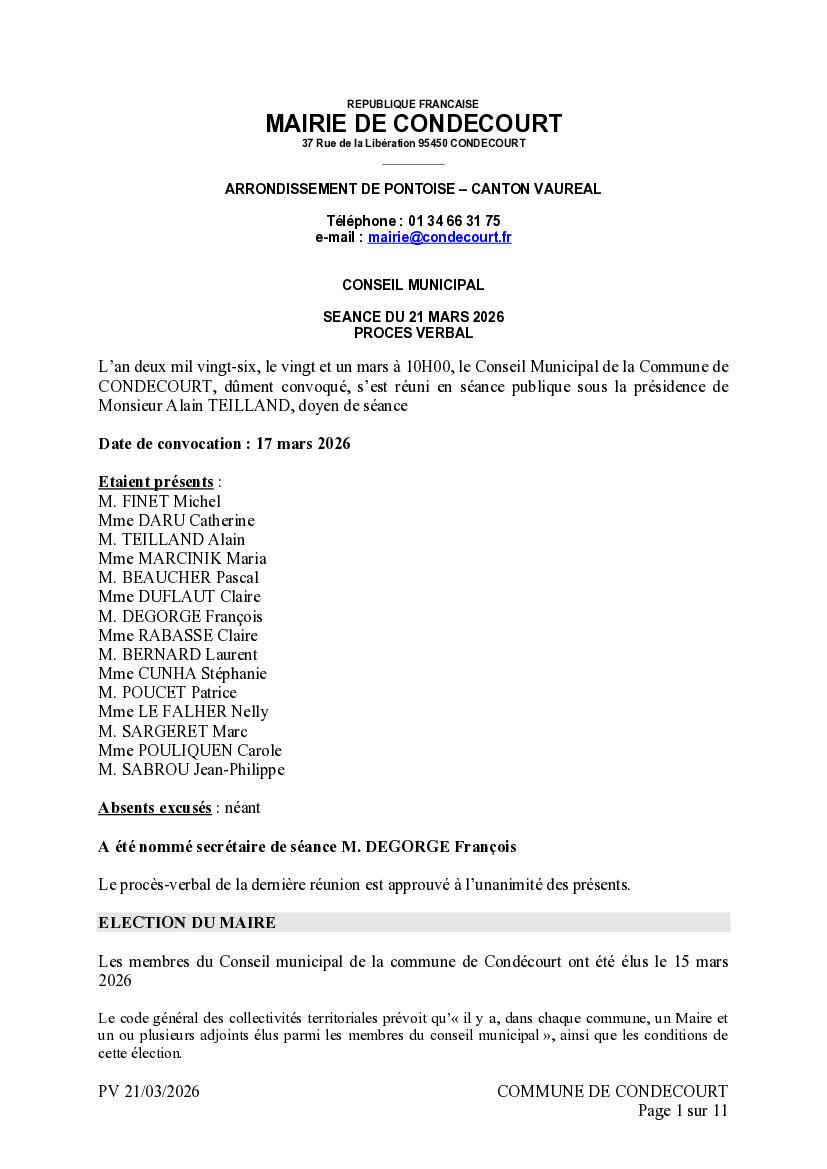 Le PV du conseil municipal d'installation est sur le site dans https://condecourt.fr/mairie/comptes-rendu-des-conseils-municipaux/