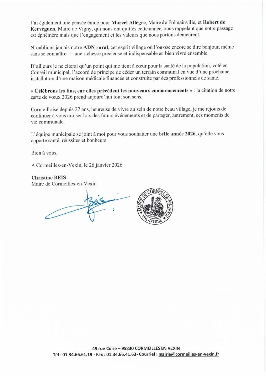 ANNULATION DES VŒUX DU MAIRE 1/27/26 C'est avec regret que nous vous annonçons l'annulation des vœux du Maire prévue le Vendredi 30 Janvier 2026