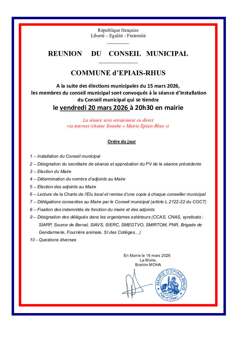 Your town hall / News / CONSEIL MUNICIPAL - VENDREDI 20 MARS À 20H30