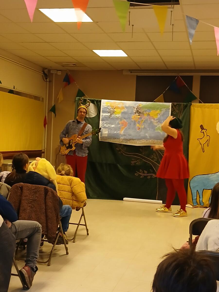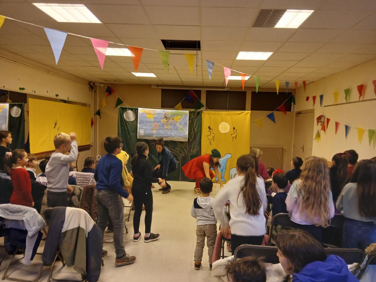 Un spectacle intéractif leur a été proposé, suivi d'un goûter et pour finir le père Noël qui était passé un peu en avance, avait déposé un cadeau pour chacun.