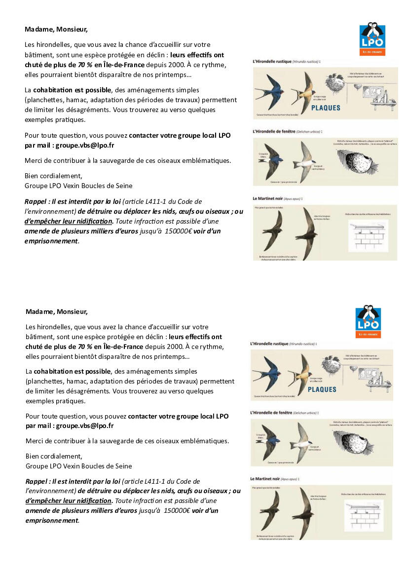 Sauvegarde des hirondelles