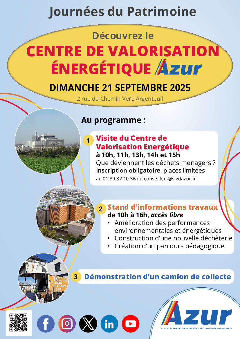 le Dimanche 21 septembre : Journées Européennes du Patrimoine avec ouverture au public du Centre de Valorisation Energétique de 10h à 16h, 2 rue du Chemin Vert, Argenteuil.