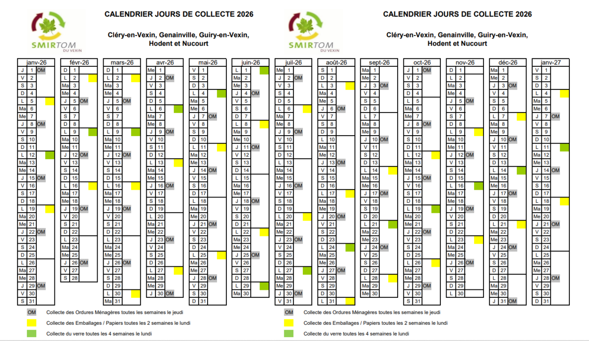 Calendrier du SMIRTOM 2026