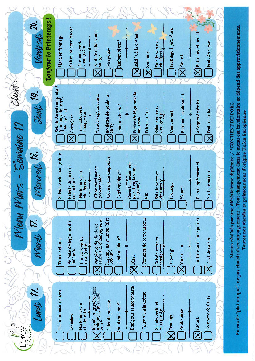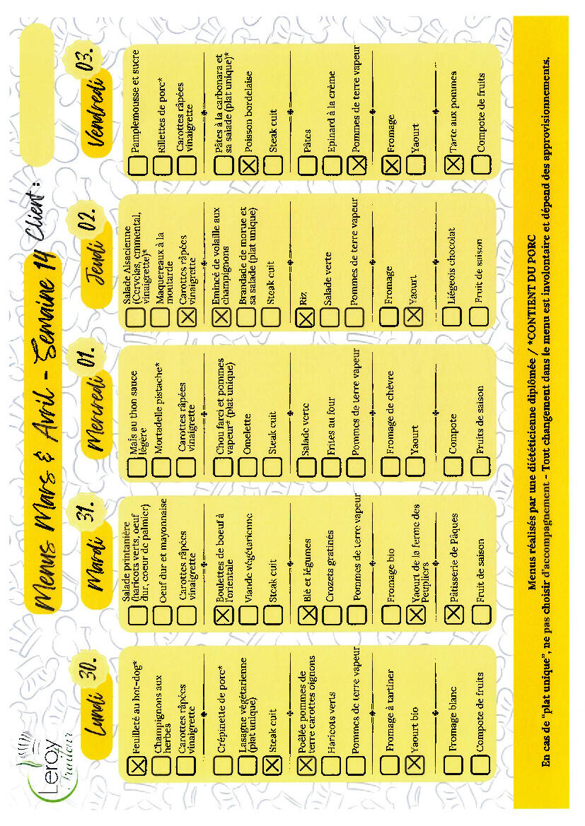 😋🍎🥕 Menus de la restauration scolaire – Mars