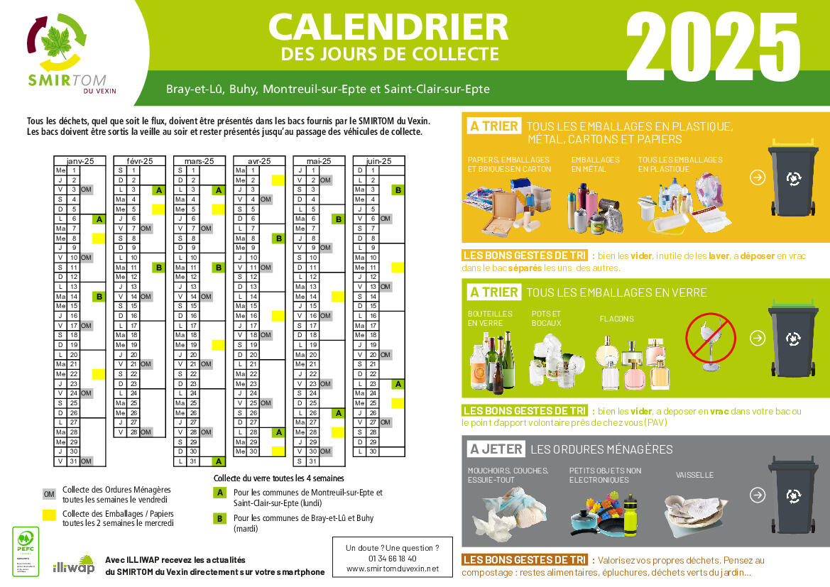 Vous trouverez ci-après le calendrier de collecte 2025 rappelant les consignes de tri.