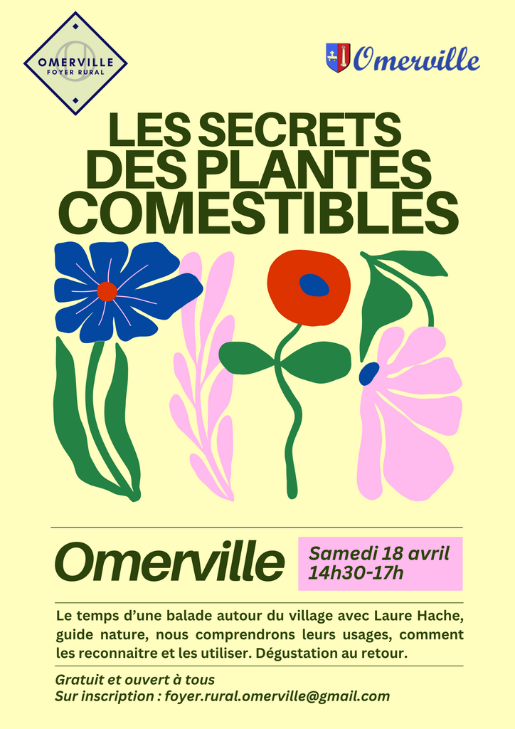 Le Foyer Rural d'Omerville organise le samedi 18 avril de 14h30 à 17h une après-midi balade sur la thématique "Les secrets des plantes comestibles"