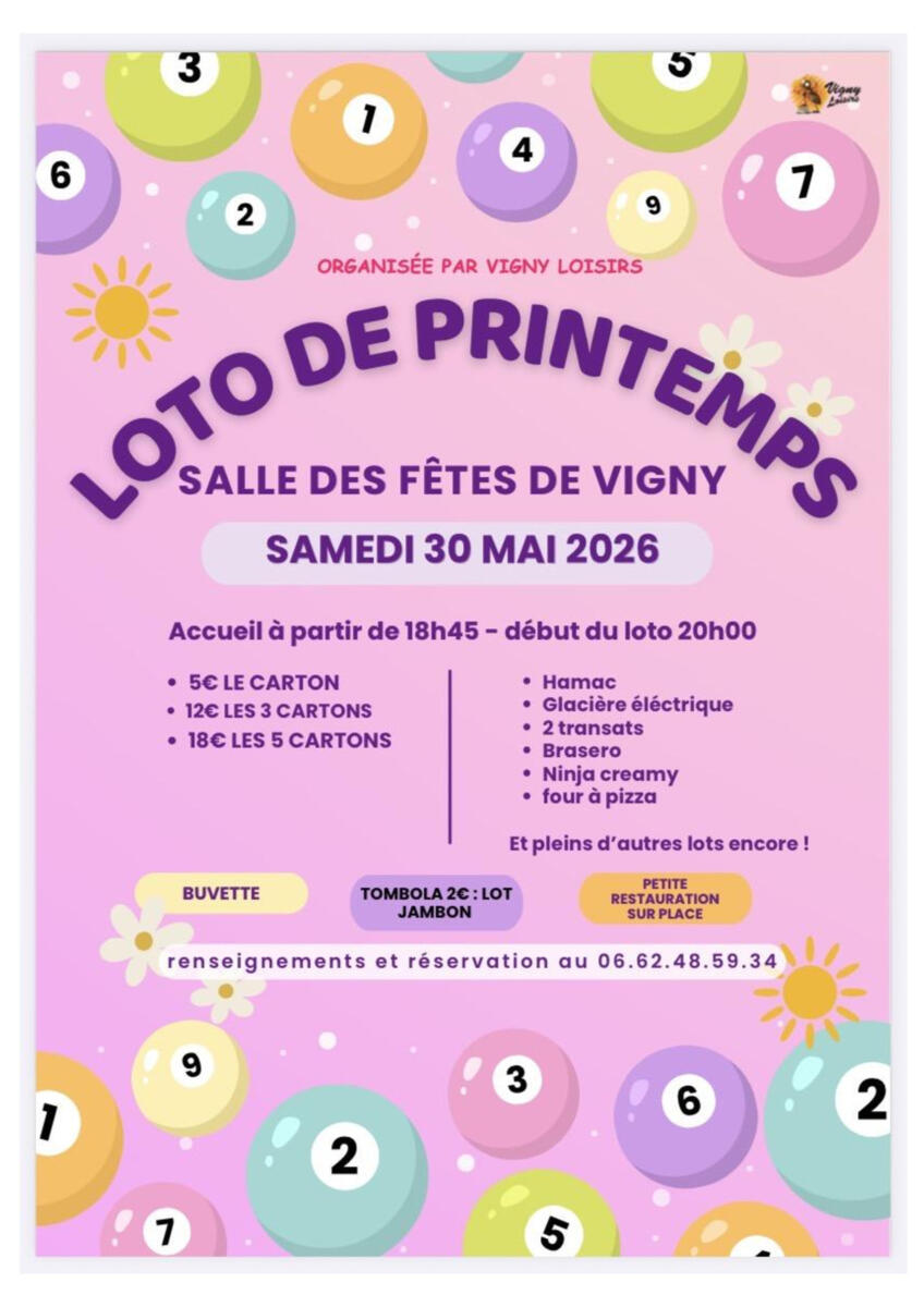le samedi 30 mai 2026 - accueil 18h45 sur réservation - Salle des Fêtes de VIGNY