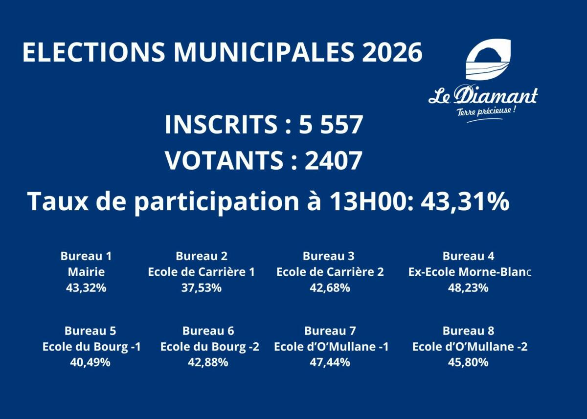 ELECTIONS MUNICIPALES 2026 - TAUX DE PARTICIPATION A 13H00