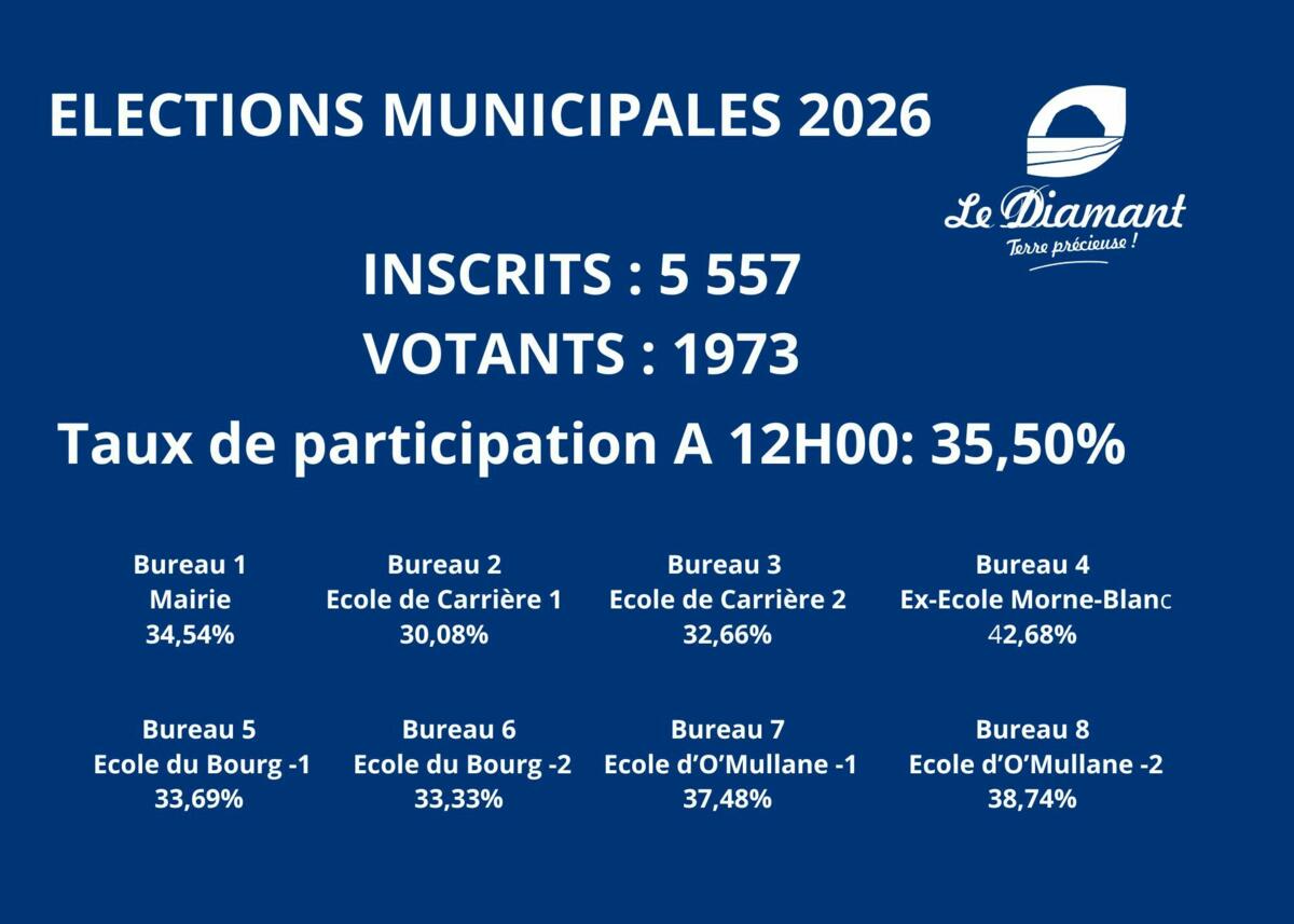 ELECTIONS MUNICIPALES 2026 - TAUX DE PARTICIPATION A 12H00